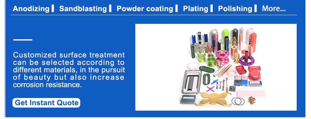 Customer's Demand、Anodized 、Plating、PVD 、Nickel Plating、Sandblasting、Powder Cating、Polishing、Multi-color anodized、Painting etc.