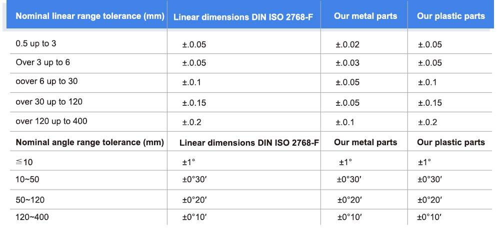 During the production process, we will implement stricter standards than the ISO tolerance DIN ISO 2768-1 for the necessary parts, as well as the CNC machining standard tolerances of our machines. |
